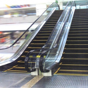 2)不透明式:指扶手护壁板采用不透明的金属或其他材料制作的自动扶梯。由于扶手带支架固定在护壁板的上部,扶手带在扶手支架导轨上作循环运动,因此不透明式其稳定性优于全透明式。主要用于地铁、车站、码头等人流集中的高度较大的自动扶梯。